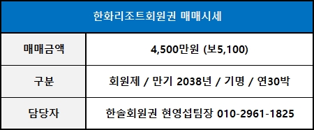 ◀ 한화리조트회원권 매매가격 ▶