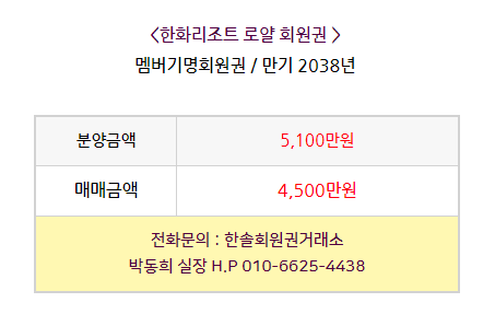 매매상담 - 한솔회원권거래소 박동희 실장 010.6625.4438