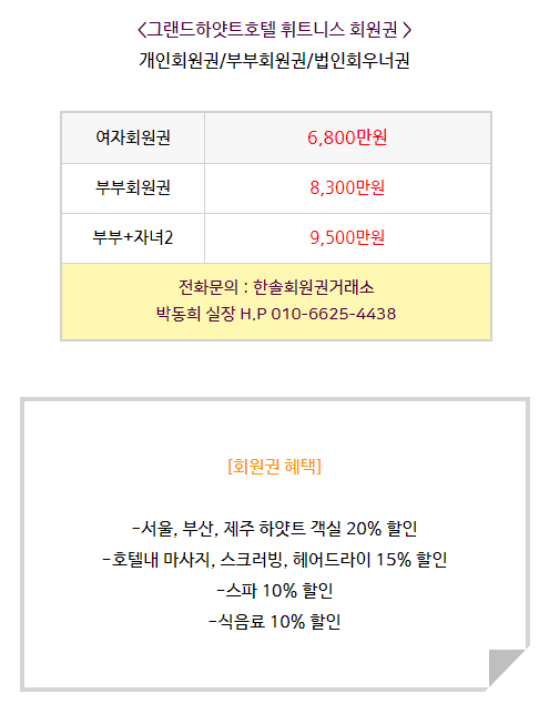 그랜드 하얏트호텔휘트니스회원권 혜택안내