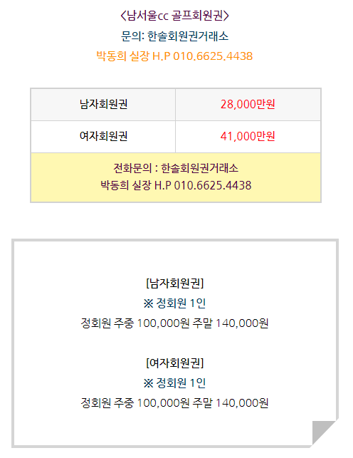 매매상담 - 한솔회원권거래소 박동희 실장 010.6625.4438