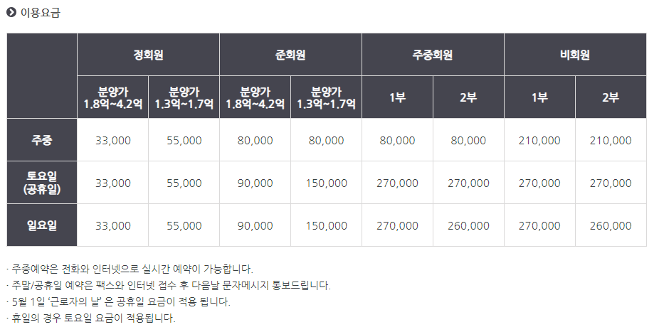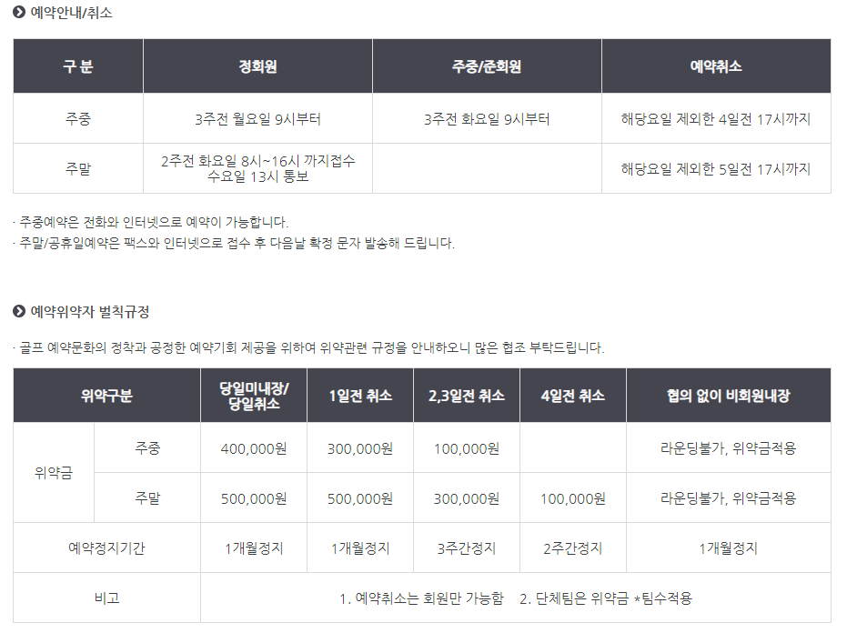 서원밸리cc 이용요금 및 예약 안내