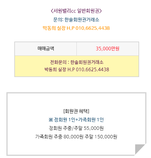 서원밸리cc 회원권은 일반회원권으로 정회원 1인과