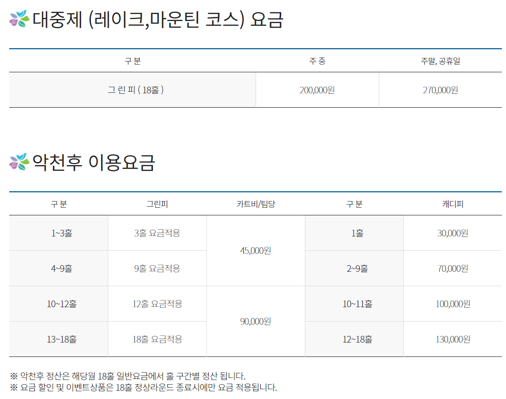 스카이밸리cc 이용요금 및 예약 안내