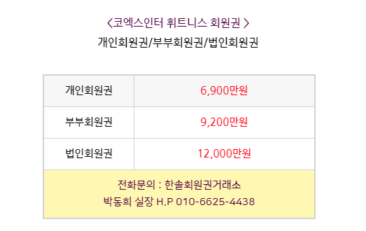 법인회원권 등의 종류로 구성되어 있습니다. 회원권의 종류가 다양한 만큼
