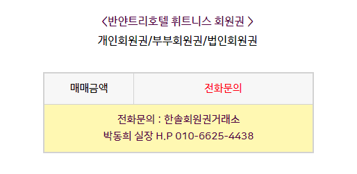 반얀트리호텔휘트니스회원권은 개인회원권과 부부회원권,