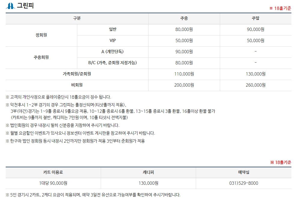 한림광릉cc 이용요금 및 예약 안내