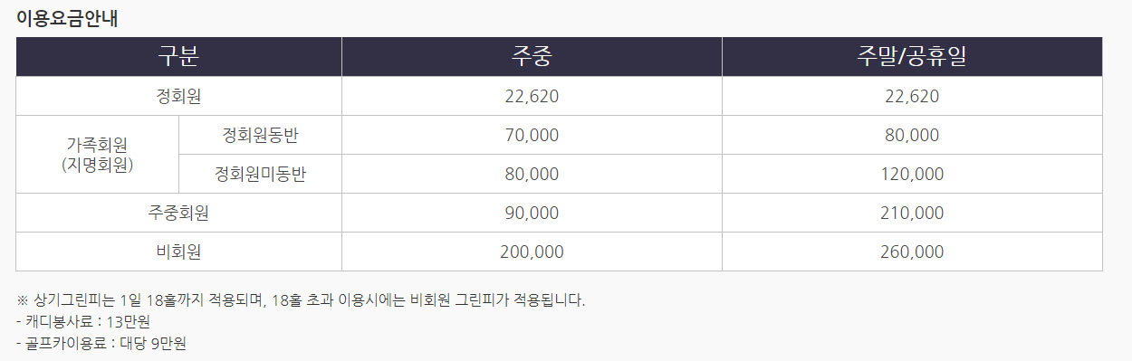 입니다. 회원권의 분양금액에 따라서 예약횟수와 그린피가
