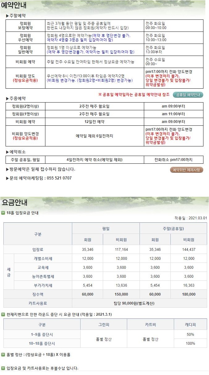 정회원 그린피 주중, 주말 6만원