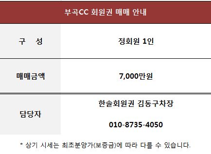 창녕 부곡CC 골프 회원권 매매 정보