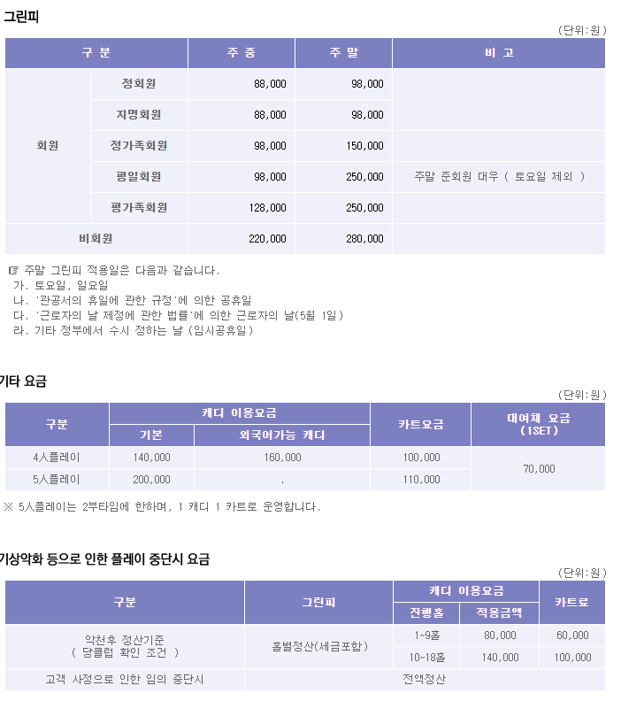 아시아나cc 이용요금 안내