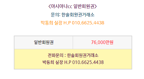 아시아나cc 회원권은 일반회원권과 주중개인,