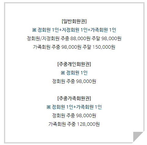 주중가족회원권으로 구분되어 있습니다. 더욱 궁금하신