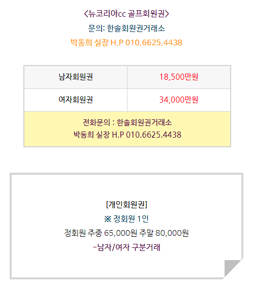 뉴코리아cc 개인회원권은 정회원 1인 입회로
