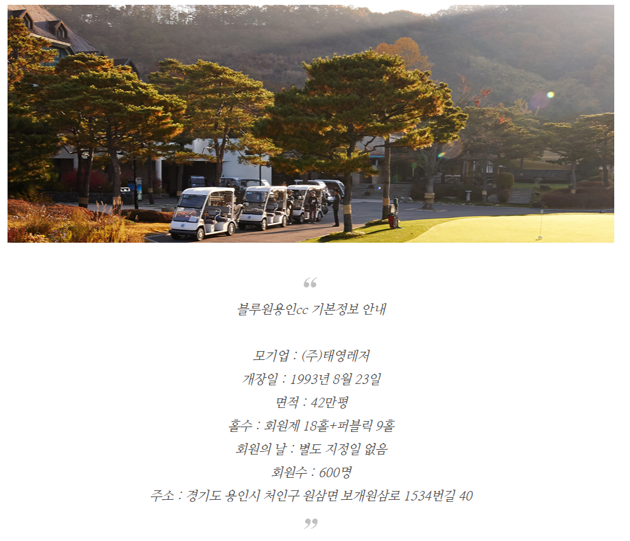 블루원용인cc 이용요금 및 예약 안내