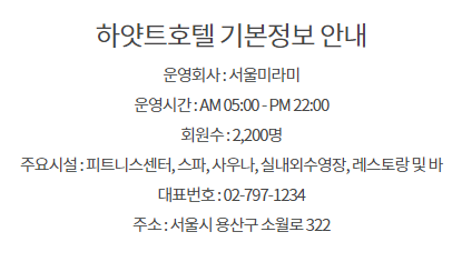 하얏트호텔 객실 20% 할인, 실내수영장, 사우나, 에어로빅 시설 등