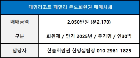 ◀ 대명리조트 패밀리 매매가격 ▶