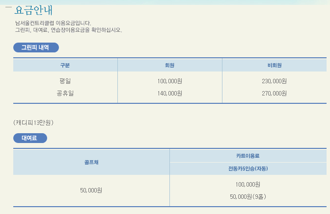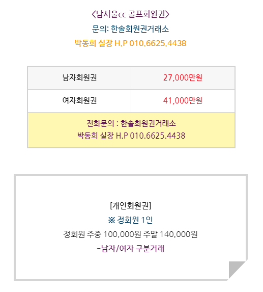 남서울cc 회원권은 개인회원권으로 남자회원권과