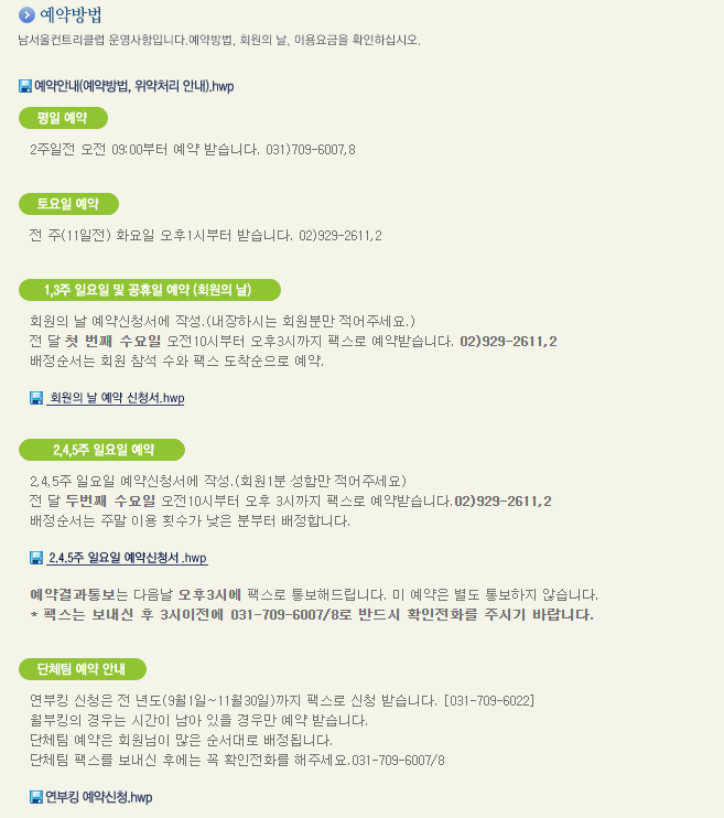남서울cc 이용요금 및 예약안내