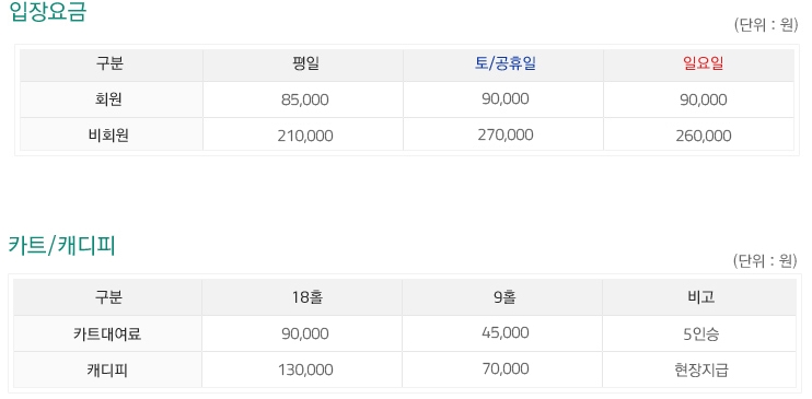 ▣ 양주cc 골프그린피 및 이용요금 안내 ▣