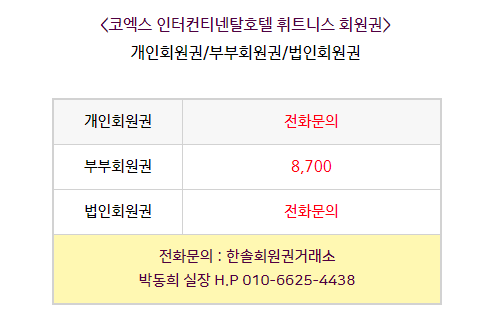 코엑스인터휘트니스회원권은 개인회원권과