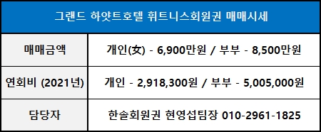 ■ 그랜드하얏트 휘트니스회원권 추천매물 안내 ■