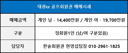 ■ 태광cc 골프회원권 추천매물 안내 ■