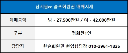 ■ 남서울cc 골프회원권 급매물 안내 ■