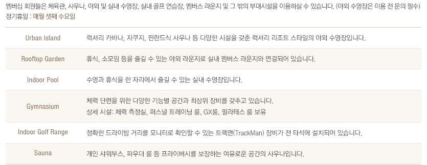▣ 신라호텔 휘트니스 내부시설 안내 ▣
