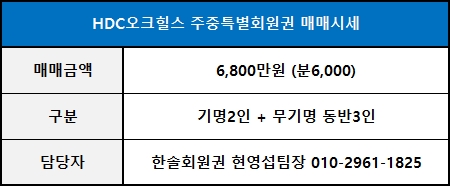 HDC 오크힐스cc 주중특별 동반무기명회원권 추천매물 매매시세 (2021.09.14.) 안내 _ 오크힐스주중 오크힐스주중무기명