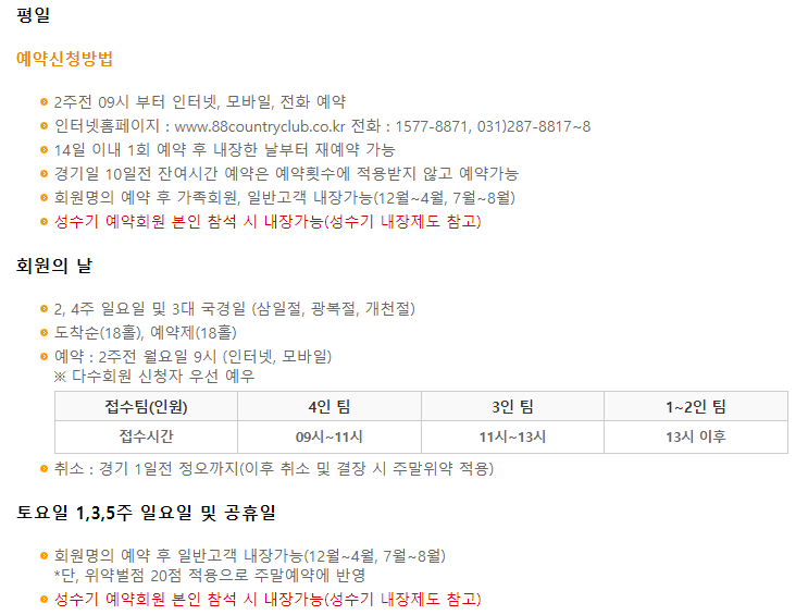 88cc 이용요금 및 예약안내