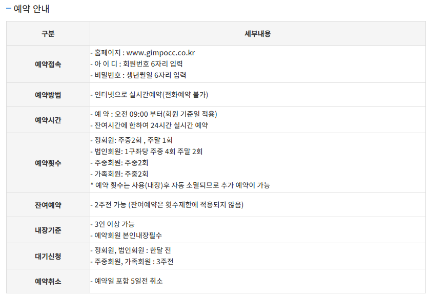 김포cc 이용요금 및 예약안내