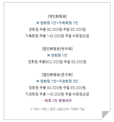 구성되어 있습니다. 법인회원권의 경우 반구좌와 온구좌로