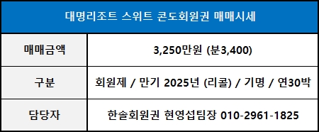 대명콘도회원권 스위트 급매물 매매시세 (2021.09.15.) 안내 _ 대명리조트회원권 소노호텔앤리조트