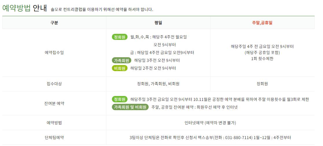 솔모로cc 이용요금 및 예약안내
