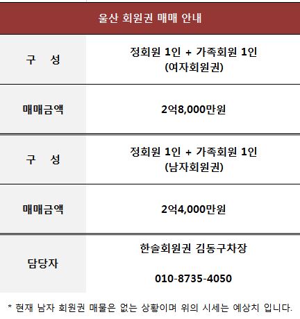 울산CC 골프 회원권 매매 정보