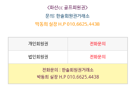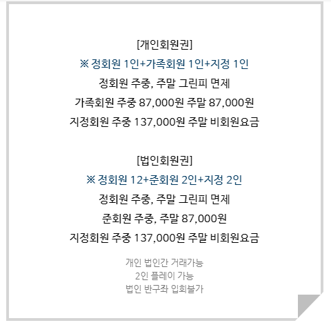 화산cc 회원권은 개인회원권과 법인회원권으로