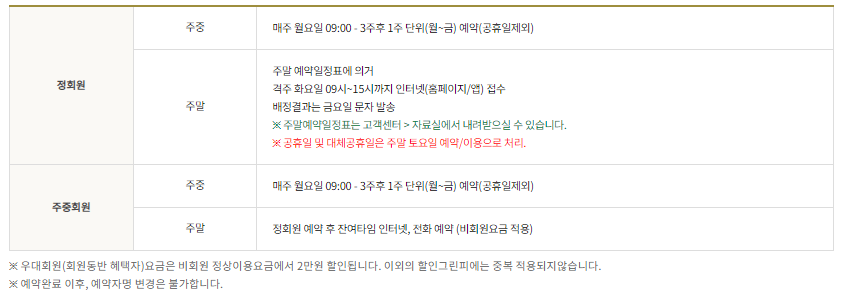 주중회원권 등 다양한 종류의 회원권이 있으니 더욱 궁금하신
