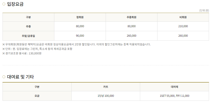 은화삼cc 이용요금 및 예약안내