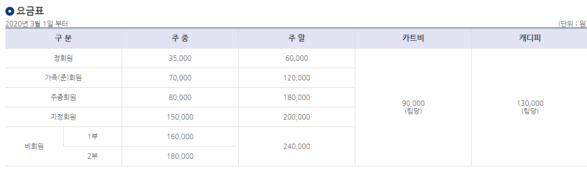 천룡cc 이용요금 및 예약안내