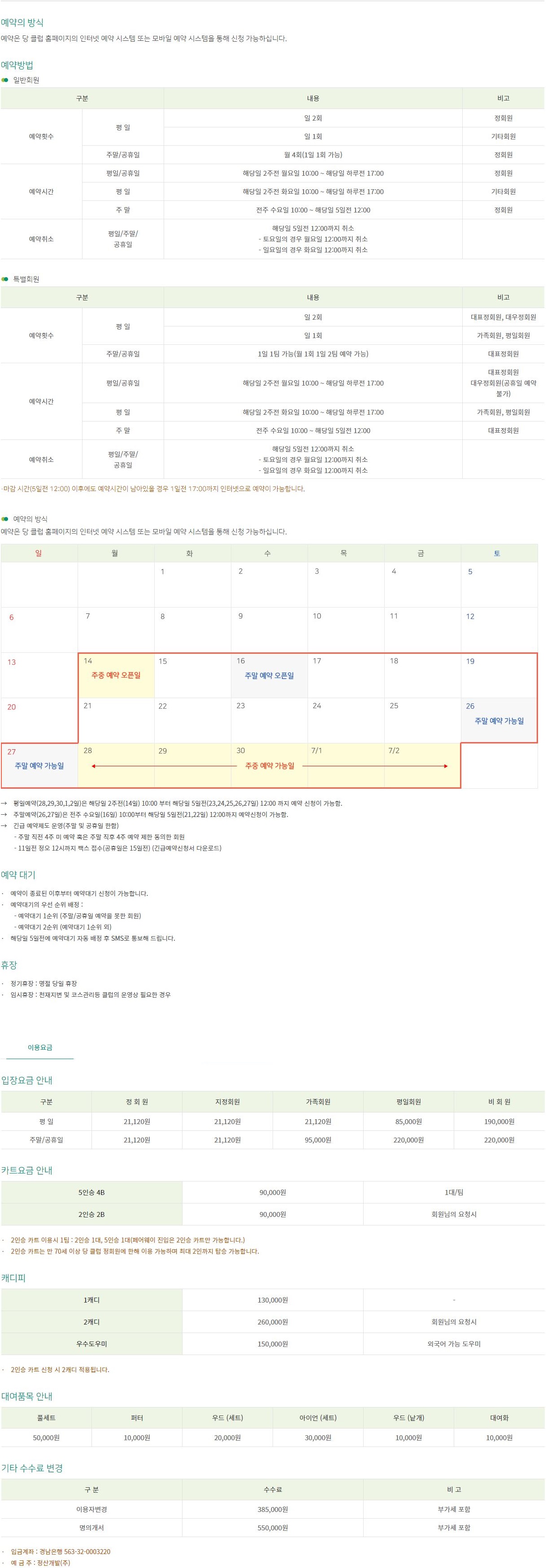 정회원, 지정회원 주중, 주말 21,120원(지정회원 5인 등재 시 1일 1인만 회원 대우)