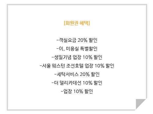 특별할인, 생일기념 업장 10% 할인, 서울 웨스턴 조선호텔 업장 10% 할인,