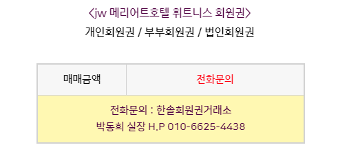 메리어트호텔휘트니스회원권 시세 및 혜택안내