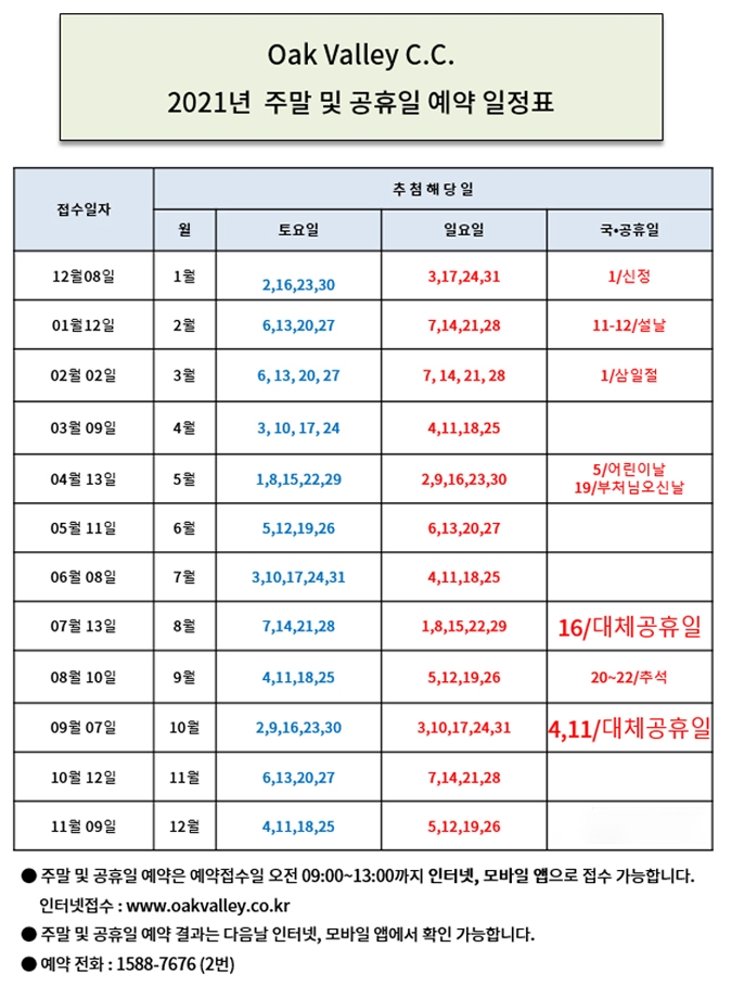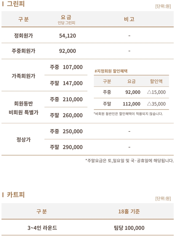 ▣ 오크밸리cc 골프 그린피 및 이용요금 안내 ▣
