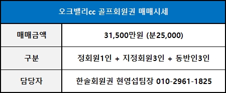 ■ 오크밸리cc 골프회원권 추천매물 안내 ■