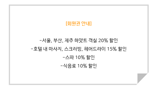 구성되어 있습니다. 혜택으로는 서울, 부산, 제주 하얏트 객실 20% 할인,