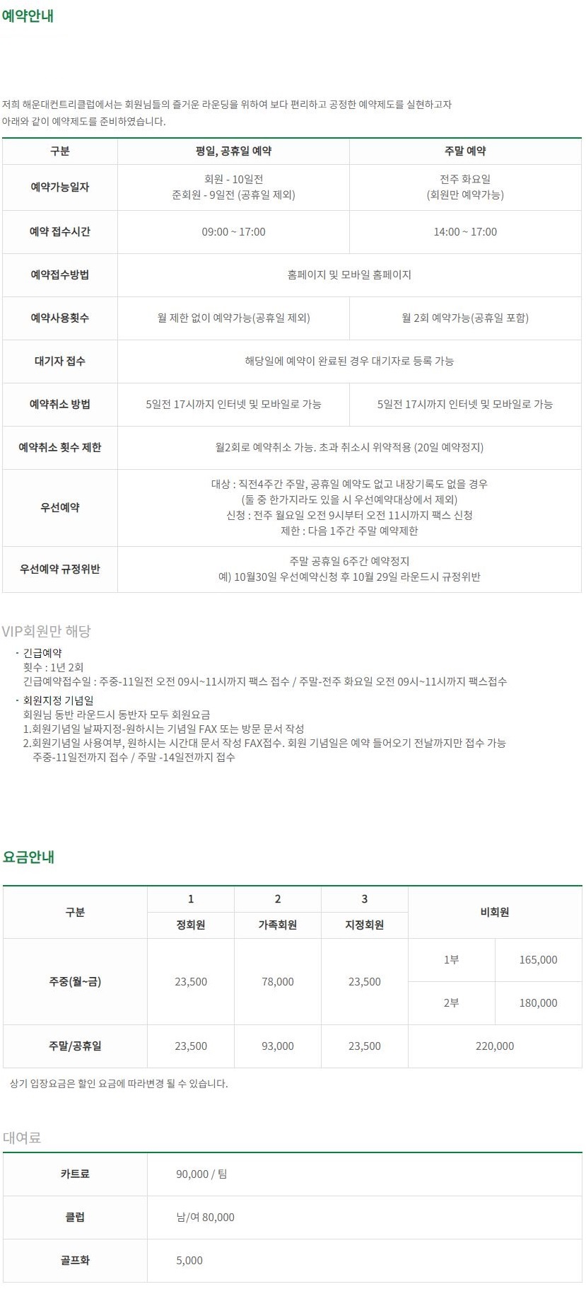 정회원 및 무기명카드 소지자 동반 전원 그린피 주중 10만3천원, 주말 11만3천원