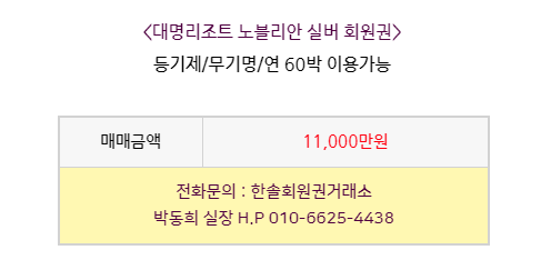 대명리조트 노블리안실버 회원권 안내