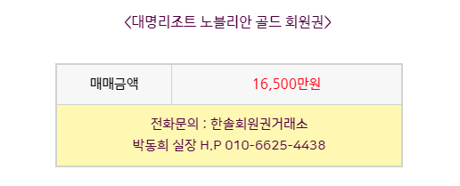 오늘은 대명리조트 노블리안골드 회원권에 대해서