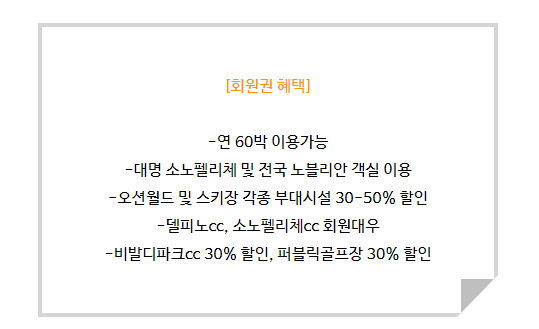 대명리조트 노블리안골드 회원권은 연 60박 이용이