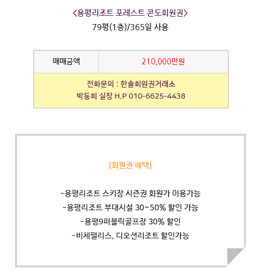 용평리조트포레스트회원권 정확한 시세 및 혜택
